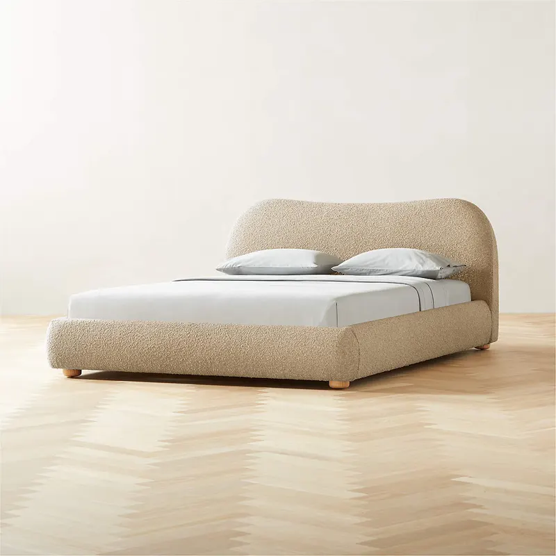Elegant curved headboard bed featuring a luxurious design, plush upholstery, and a sturdy frame.